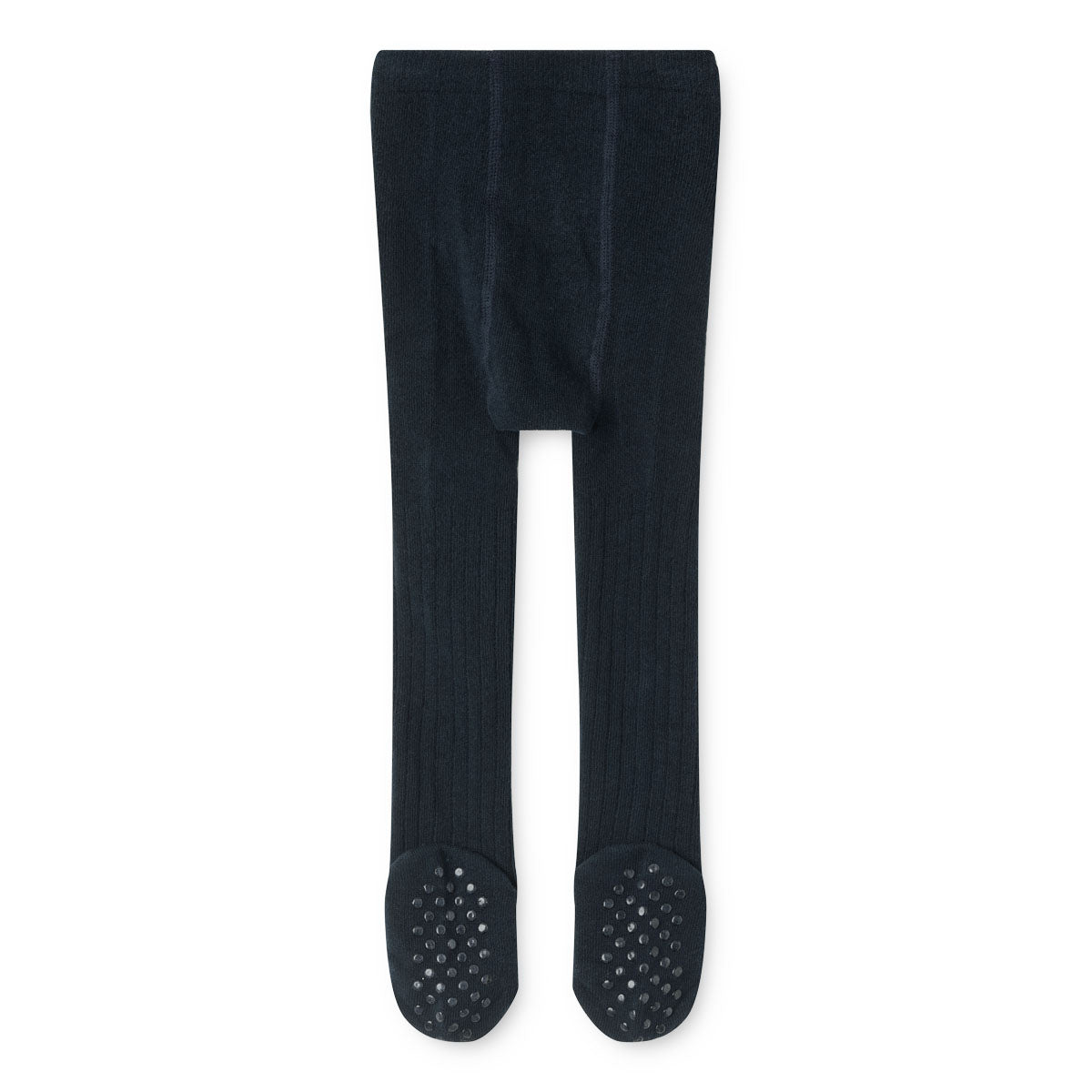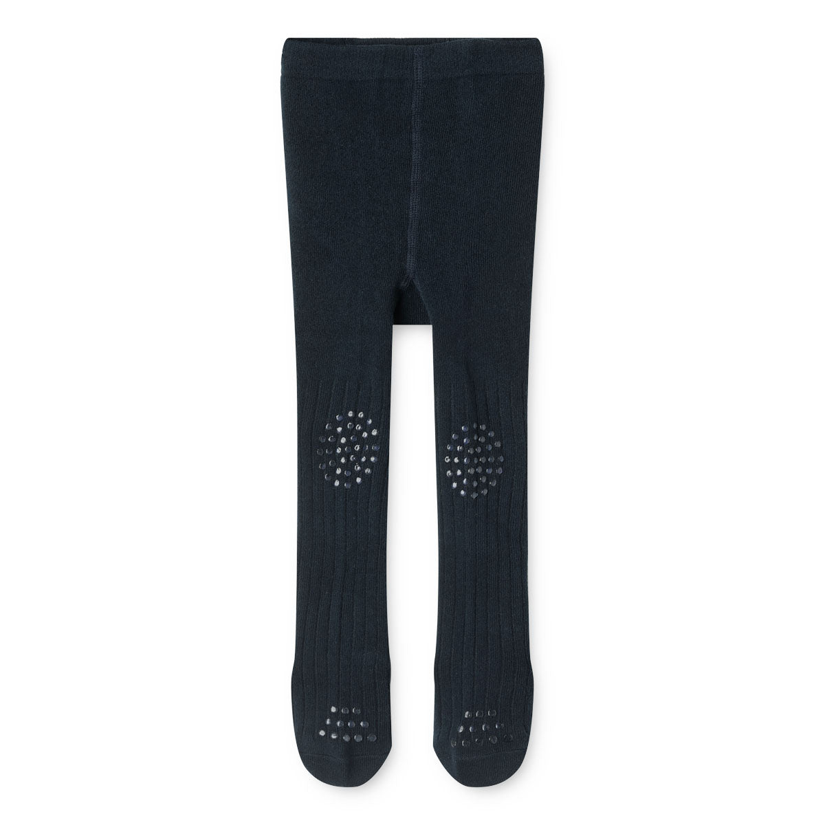 Strømpebukserne har en bred elastikkant i taljen og er fremstillet i en blød ribkvalitet, der gør dem elastiske og bløde. De har praktiske gummidutter på knæene og fødderne og er derfor skridsikre, så barnet nemmere kan kravle over glatte overflader.