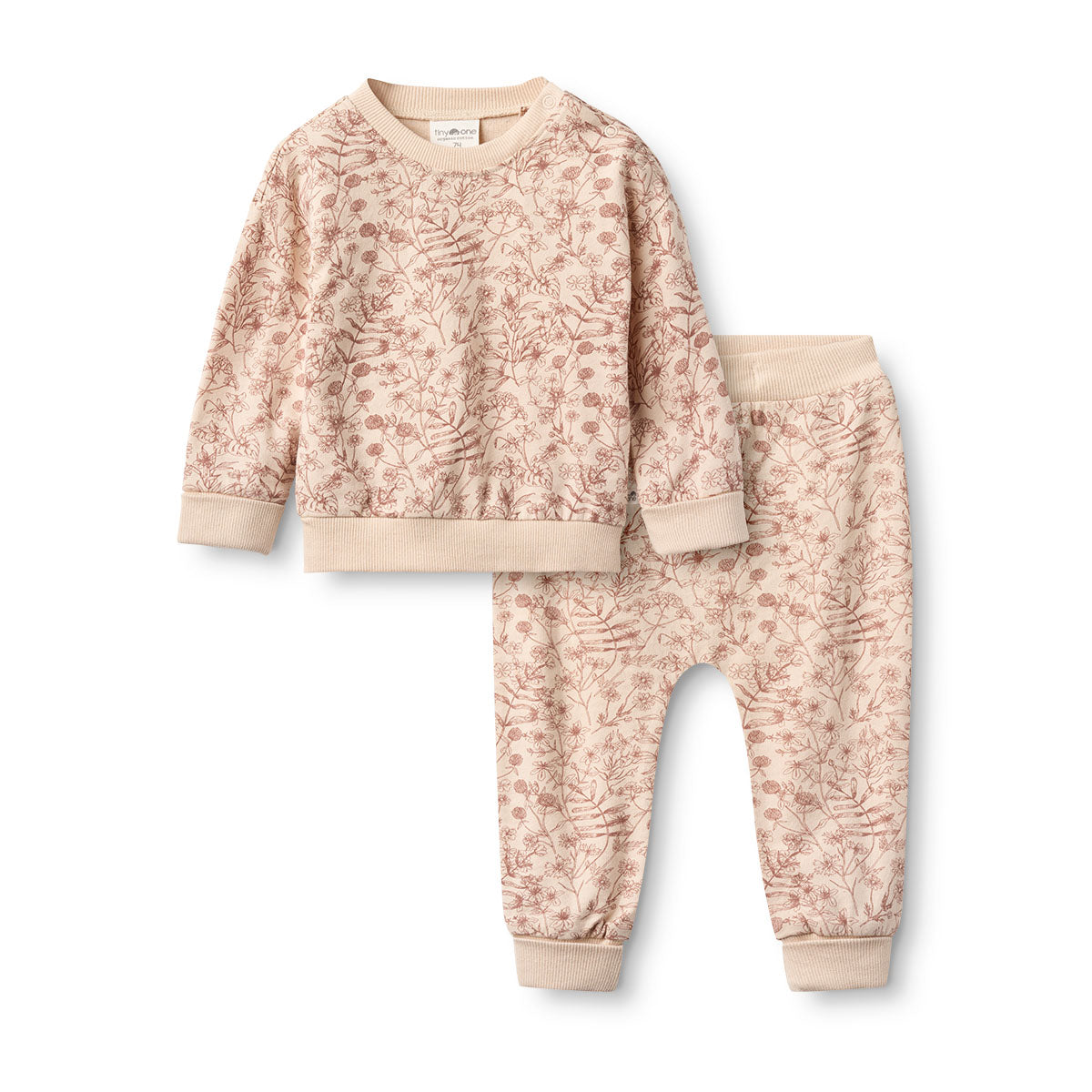 Løstsiddende og komfortabelt sweatsæt i blød melange med fint blomster print. Designet med extended size, så dit barn kan have glæde af den i længere tid.